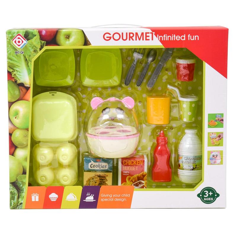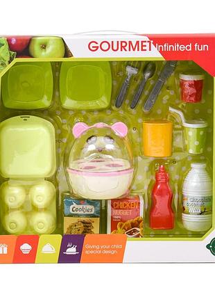 Іграшковий набір "Продукти". Комплектація - 14 предметів: посуд та продукти. Матеріал - пластик. Упаковка - коробка. Розмір - 39х13х18 см.