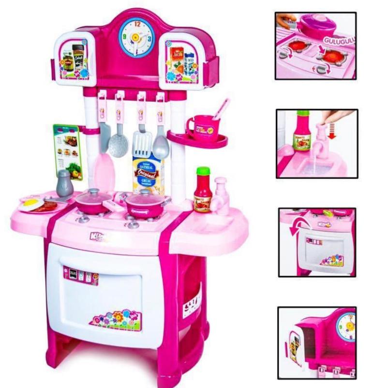 Игрушечная кухня WD-P19 оптом. Детская кухня — лучший набор для игр, который помогает обучать ребенка. Подобная игрушка невероятно полезна в развитии малышей, ведь ролевые игры — это отличный метод одновременно развивать дитя и развлекать его. Играя с кухней, девочки могут почувствовать себя настоящими хозяюшками, совсем как мамы. На данных кухнях всегда можно приготовить невероятно вкусный и полезный обед, или просто открыть свой ресторан. Детская кухня для игр имеет следующие преимущества: с помощью кухни можно познакомить ребенка с самыми разными продуктами питания и наглядно показать, для чего нужно применять тот или иной предмет техники; • есть большие модели кухонь, которые позволяют одновременно играть нескольким детям; • современные кухни могут издавать звуки жарки, воды и другие; • есть наборы с небольшими предметами, что помогает развивать моторику рук; • игрушки выполнены из качественных, гипоаллергенных материалов – они не вредны для здоровья малыша.