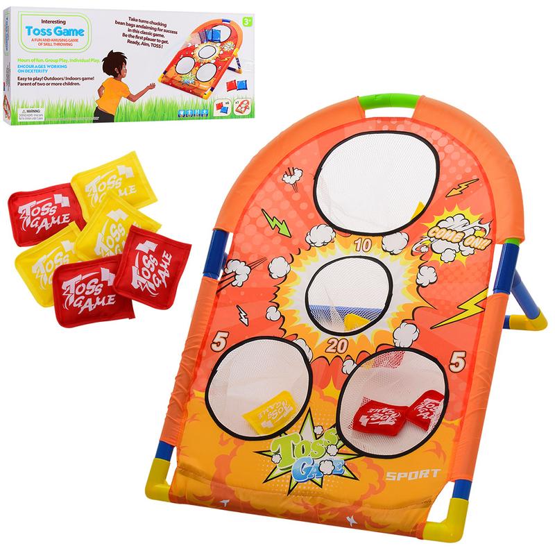 увлекательная игра на меткость, можно весело проводить время с друзьями и родителями, устраивать соревнования на количество попаданий в цель, в набор входит щит с мишенями на подставке, 6 мешочков по 8 см, размер упаковки 54-24-6 см