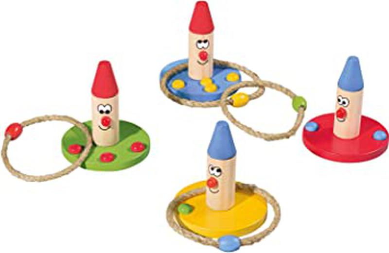 Игровой набор Кольцеброс/метание колец колец Playtive Германия с натуральными верёвочными кольцами и деревянными столбцами в виде фигур. Из экологично безопасных и качественных материалов. Развивает моторику, учит целиться. 4 фигурки из массива дерева 8 колец
