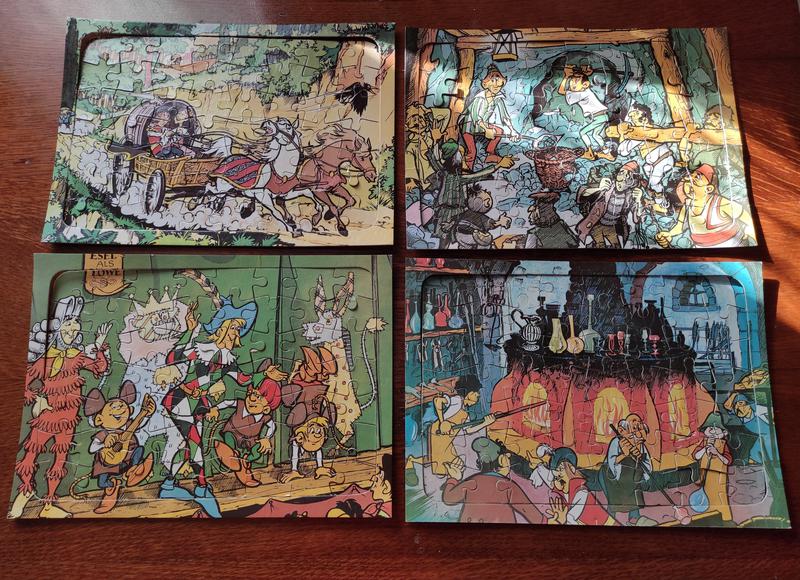 В одной коробке 4 разных картины, каждая картина по 56 пазлов + рамочка к каждой картине. Цена указана за всё сразу, Картины размером 31 см*22 см