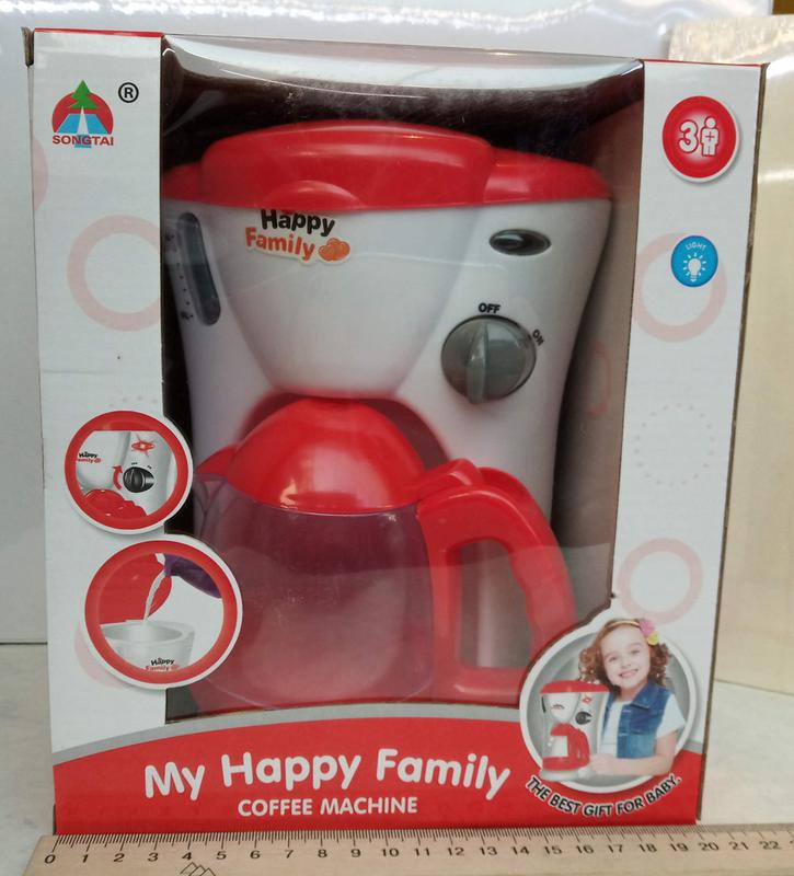 Кофеварка 5214 сделана из пластика, цвет её бело-красный. Чтобы залить в кофеварку водичку, надо будет открыть верхнюю крышку. Затем вставляется чайничек, а ручка переводится в режим «on». После этих действий кофеварочка начинает «работать» - у неё загорается световой индикатор, а в чайник начинает течь вода. Предназначено для деток от 3 - х лет. Габариты: 17 х 14 х 22 см. Размер коробки: 20 x 23 x 14 см.