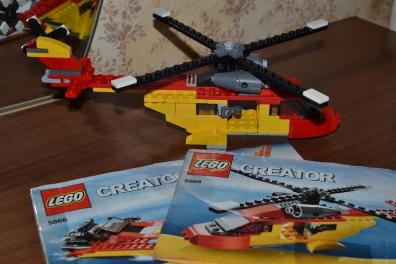 Есть инструкция, сост оящая из двух буклетов и детали, позволяющие собрать три модели - два вида вертолетов и моторный катер.