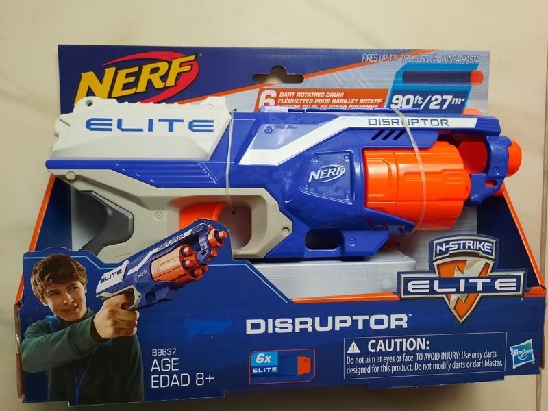 Бластер "Элит Дисраптор" – мощное, но компактное оружие. Барабан бластера предназначен для 6 стрел. Для зарядки не откидывается как в модели "Элит Стронгарм", установлен стационарно. Во время стрельбы он крутится, что позволяет увеличить скорость стрельбы. Дальность выстрела – почти 20 метров. Бластер может стрелять в двух режимах: полуавтоматическом и ручном. В комплект входит бластер и 6 стрел. Игрушка предназначена для детей, которые достигли возраста 8-ми лет.