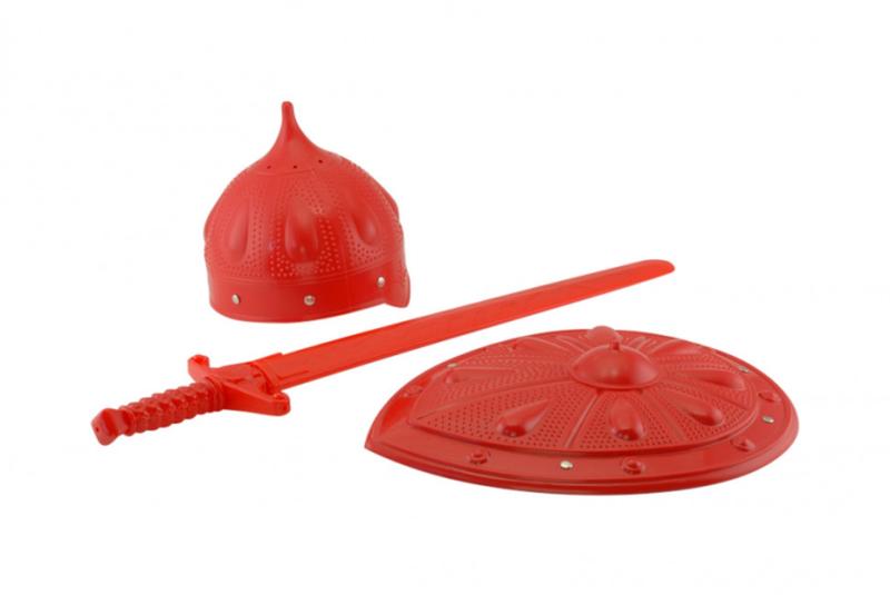 Набор "Богатырь". С таким вооружением не страшен ни один злой разбойник или коварный противник-рыцарь — настоящая мечта для любого мальчишки! Активные, подвижные игры очень важны для правильного физического развития ребенка, а если подключить фантазию и выдумать интересные сюжеты для таких игр с мечом, то это полезно вдвойне, так как ребенок, играя, развивает ловкость, координацию движений, меткость и, конечно, воображение. Все составляющие комплекта выполнены очень реалистично, с тщательной проработкой всех деталей. Удобный шлем, закрывающий все уязвимые части головы, легкий, удобный щит и эргономичный меч, практически невесомый и маневренный — все это делает игру более увлекательной и сводит к нулю вероятность травмы. Игрушки изготовлены из пластика высокого качества, не теряющего свой цвет, не подверженного сколам и устойчивого к царапинам, совершенно безопасного для здоровья ребенка. В комплекте: меч, шлем, щит.