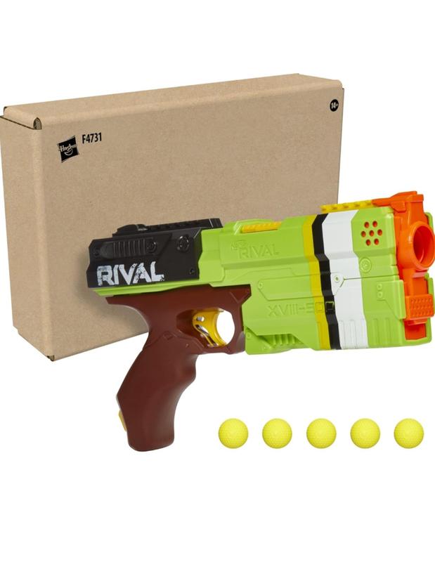 В наявності БЛАСТЕР NERF RIVAL KRONO XVIII-500 в ексклюзивному зеленому кольорі Цей пружинний бластер стріляє зі швидкістю 27 метрів за секунду, щоб протистояти команді суперника в іграх високої інтенсивності. БЛОКУВАННЯ СПУСКА- замок на спусковий гачок для запобігання випадковому пострілу. В наборі 5 патронів. Екологічна упаковка.