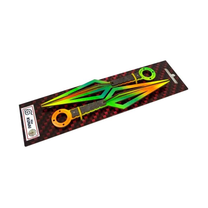 Деревянное изделие в виде японского ножа "кунай". Сделан очень качественно, с высокой детализацией и яркой расцветкой. В наборе два таких ножа. Размер: 21 х 3 х 5 см. Упаковка: планшет Размер упаковки: 7,5 х 3,5 х 28 см