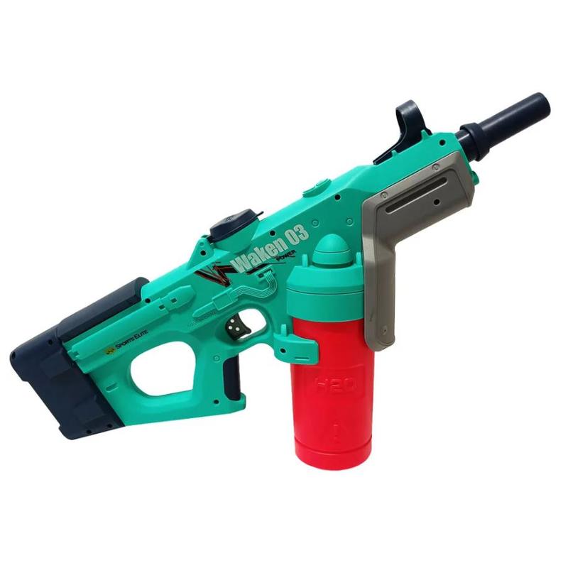 Автоматический водный автомат представляет собой водное оружие нового поколения. Забудьте про механические водные автоматы с насосами которые постоянно необходимо качать. Water Gun работает от аккумулятора, Вам просто нужно нажать на курок, чтобы стрелять. Максимально простая конструкция с одним курком, без насосов для накачивания. Так же оружие имеет крутой футуристичный дизайн который выглядит очень современно. Емкость для воды вмещяет в себя 1,2 л., примерно 150 выстрелов. Оружие стреляет на расстояние до 10 метров. Сверху находится крышка для набора воды. Особенность: Авматически стреляет при нажатии на курок Дальность стрельбы до 10 м. Работает от аккумулятора.