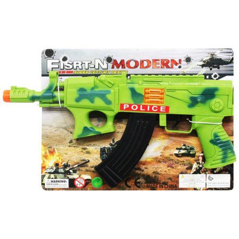 Автомат-трещетка, выполненный из качественного пластика. При нажатии на курок2 издает звук стрельбы. Размер: 33х17х3 см. Для детей от 3-х лет. Бренд: MIC Возраст: 3 года Упаковка: Сетка Цвет: Зеленый Вес в упаковке: 140 г Габариты в упаковке: 33 x 4 x 22 см Габариты без упаковки: 33 x 4 x 17 см Cтрана производитель: Китай Материал: Пластик Комплектация: Автомат