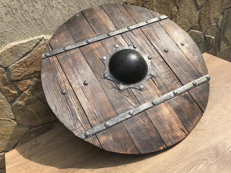 Шукаєте незвичайний щит ручної роботи? Ось воно! Розміри: - Діаметр: 67 см - Вага нетто: 6 кг Ціна в списку не включає гравіювання/персоналізацію. Гарний подарунок для багатьох випадків! Це може бути найкращим функціональним витвором мистецтва та прикрасою у вашому домі!