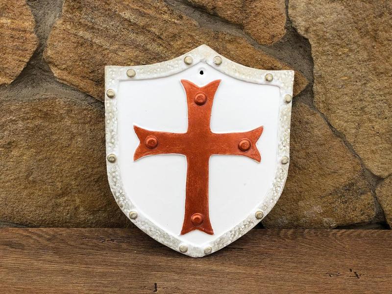 Ищете необычный щит ручной работы? Вот он! Щит, кованный вручную. Размеры: - Высота: 20 см - Ширина: 17 см Цвет: белый, медь, немного бронзы, лакированный. Этот щит станет отличным подарком для многих случаев! Добавьте шарма своему дому с помощью одной из этих милых изделий!