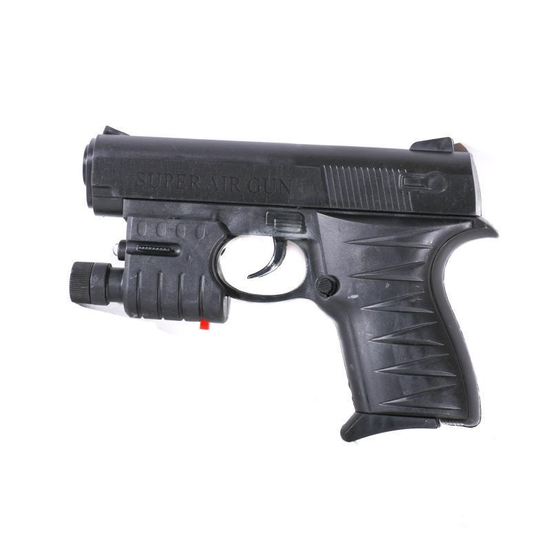 Іграшка "Пістолет". Є лазерний приціл, пластикові кулі в комплекті. Живлення - батарейка типу таблетка. Матеріал - пластик. Упаковка - пакет. Розмір - 15х3х11,5 см.