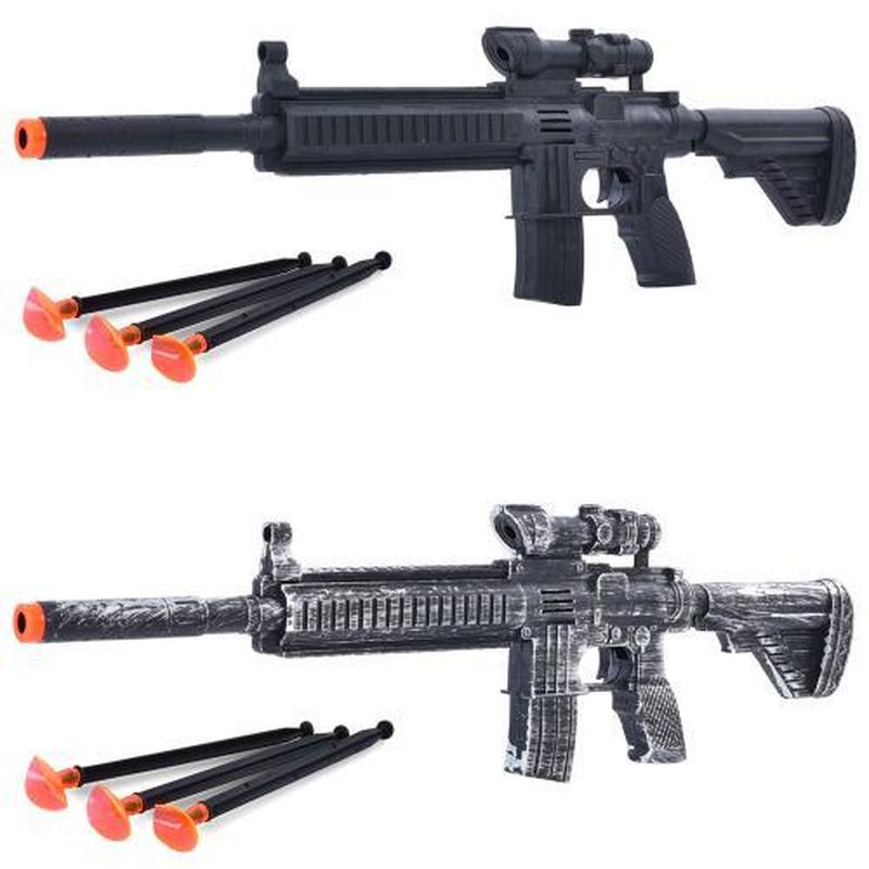 Автомат, 45 см, 2 кольори. Стріляє кулями-присосками, 3 шт в наборі. Матеріал - пластик. Упаковка - пакет. Розмір - 50х3х17 см.