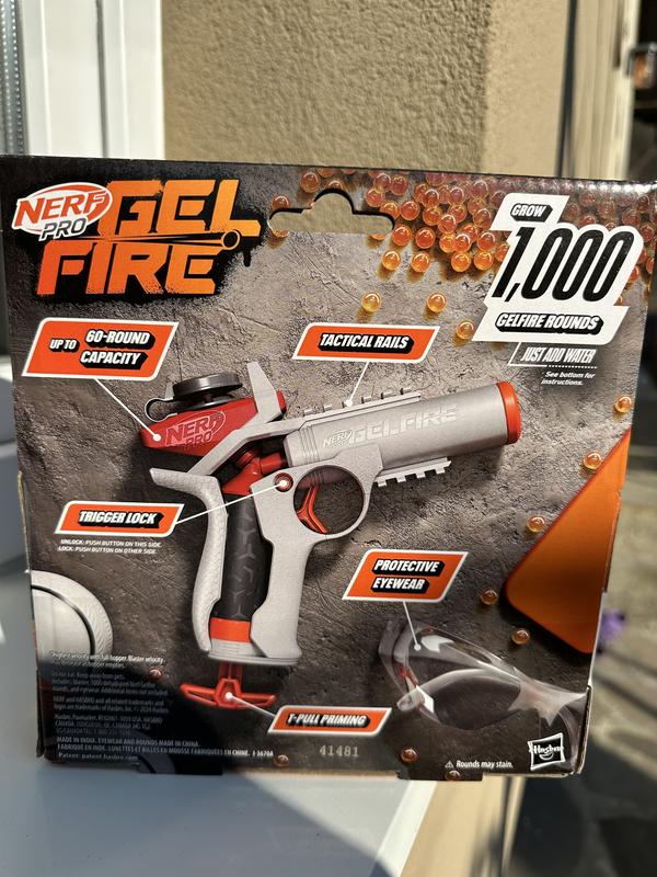 Вирушайте в бій із бластерами Nerf Pro Gelfire із зволоженими патронами, які розриваються при ударі! Вирушайте в бій із бластерами Nerf Pro Gelfire із зволоженими патронами, які розриваються при ударі! Go into battle with the Nerf Pro Gelfire Blasters, featuring dampened cartridges that burst on impact! Вирушайте в бій із бластерами Nerf Pro Gelfire із гідратованими снарядами, які розриваються при ударі! Go into battle with Nerf Pro Gelfire blasters with hydrated shells that explode on impact! Бластери забезпечують високоефективну вибухову роботу, щоб підпалити вашу конкурентну перевагу. Патрони Nerf Pro Gelfire поставляються зневодненими в коробці, що дає вам величезну кількість патронів для багаторазової заправки. Додайте воду для зволоження патронів протягом 3-4 годин, щоб підготувати їх до використання. Гідратовані гелеві снаряди стріляють із бластера на високій швидкості та вибухають, коли потрапляють у ціль. Не потрібно підбирати патрони! Бластер Nerf Pro Gelfire Ignitor має велику потужність у компактному розмірі, стріляючи пострілом зі швидкістю до 150 FPS. Це ідеальний бластер, який можна взяти з собою, щоб ви завжди були готові до дії. Бластер містить 1000 зневоднених снарядів із м’якого суперабсорбуючого полімеру Nerf Pro Gelfire і має потужність до 60 пострілів, блокування курка та захисні окуляри. Рекомендовано використання на відкритому повітрі. Для віком від 14 років. NERF і HASBRO, а також усі пов’язані торгові марки та логотипи є торговими марками Hasbro