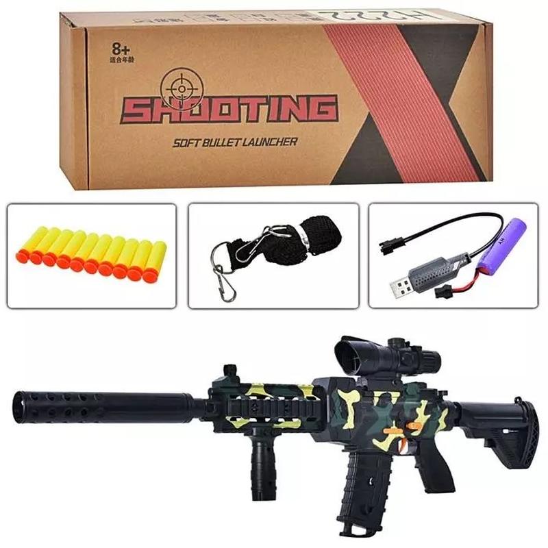 Автомат H222 76см, на пули-присоски, прицел, глушитель, на аккумулятор, USB-зарядное, в коробке 49*19*9см