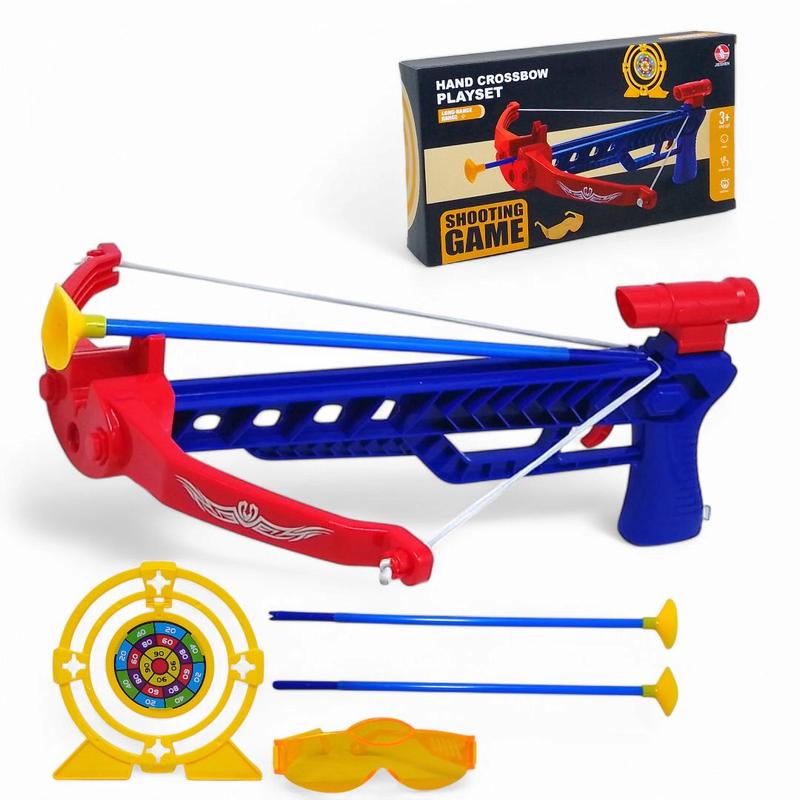 🏹Арбалет 38 см, мишень, стрелы-присоски 3 шт🏹 ⠀ Игрушечный арбалет длиной 38 см - идеальный аксессуар для активных игр😉 В комплект входят три стрелы с присосками, которые обеспечат точность попаданий в цель, а также защитные очки для безопасности во время игры. Отличный выбор для детей, которые любят приключения и меткий выстрел. Развивает координацию и внимание. Подходит для игры как на улице, так и в помещении👍 ⠀ Цена 270 грн