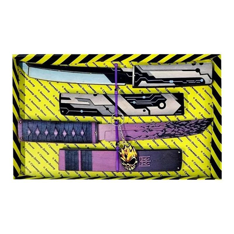 Набор сувенирных ножей - Legacy транзистор и Tanto рестлесс. Материал: фанера. Длина ножа - 28 см. Замечательный подарок-сувенир, в комплекте есть брелок. Ножи деревянные, качественные и прочные. Не заточены, острые части закруглены и зашлифованы, полностью безопасны. Для детей от 6 лет.
