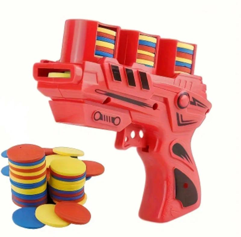 Увлекательная игрушка для активных игр дома и на улице. Пистолет выполнен из прочного безопасного пластика, имеет три отсека для зарядки разноцветных дисков (синий, жёлтый, красный) и стреляет мягкими пластинами на расстояние до нескольких метров. Лёгкий и удобный в использовании, подходит для детей от 5 лет. Отличный вариант для весёлых игр с друзьями, соревнований на меткость и подвижных развлечений.