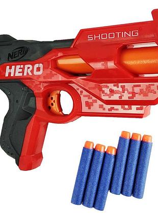 Бластер Nerf Hotshock - это небольшой, простой бластер с держателем для одной дополнительной стрелы. Стрелы загружаются в ствол прямо со стороны дула, пружина взводится Т - образным рычагом с тыльной стороны. Хот Шок может выстрелить на дальность 15 метров - это стандартный показатель для пистолетов Nerf. Благодаря простоте в обращении этот бластер подойдёт даже новичкам - в его конструкции нет ничего лишнего и сложного, ребёнок легко справится с ним даже без инструкции. В комплекте 6 стрел. Размер коробки 29 * 5 * 20 см.