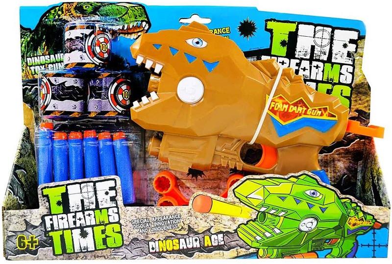 Бластер динозавр с мишенью устроить настоящие соревнование и провести время весело. Игрушка исполнена в дизайне головы динозавра. Патроны вылетают на высокой скорости. Они изготовлены из вспененного полимера и абсолютно безопасны для детей даже на близком расстоянии. Бластер сделан из крепкого и легкого пластика, он удобен для руки малыша. В комплекте 6 патронов и 3 мишени. Размер коробки 34 * 6 * 25 см.