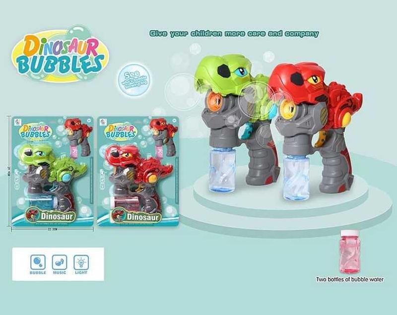Пистолет для мыльных пузырей 1034 (64/2) с динозавром, 2 цвета, комплект из 2 бутылочек мы...