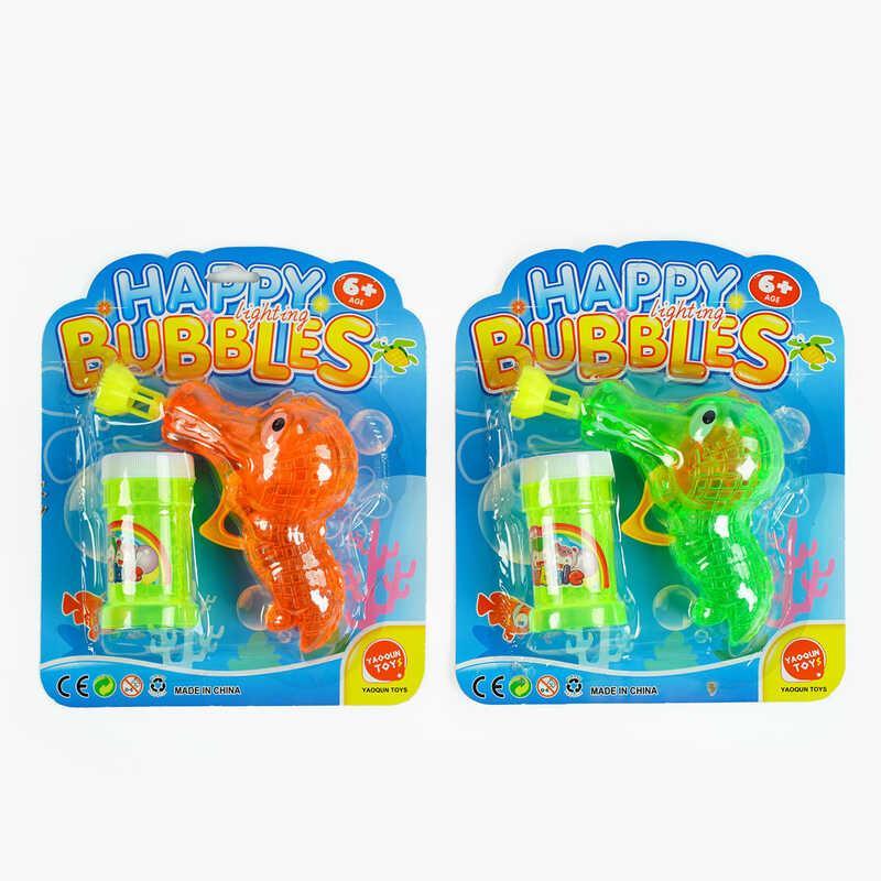 Веселый пистолет с мыльными пузырьками "Happy Bubbles" Этот яркий механический пистолет с мыльными пузырьками станет отличным дополнением к играм на свежем воздухе! Прозрачный корпус позволяет наблюдать за процессом, а два цвета — ярко-оранжевый и зеленый — несомненно привлекут внимание детей. В комплект входит бутылочка с мыльной жидкостью, что позволяет сразу же начать веселье. Пистолет прост в использовании: достаточно нажать на кнопку, чтобы создать множество пузырьков, которые летают в воздухе. Идеально подходит для праздников, прогулок или домашних развлечений. - Возраст: от 6 лет - Материал: безопасный пластик - Форма: пистолет в виде морского конька
