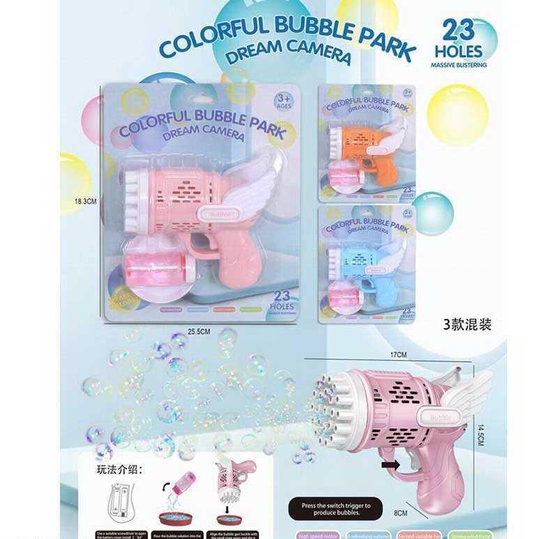 Пистолет для создания пузырей 10167 (120/2) с тремя цветами, питание от батареек, 23 отвер...