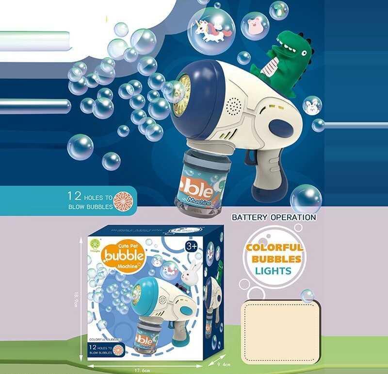 Ощутите магию мыльных пузырей! Всегда мечтали о незабываемых моментах веселья? Автоматический пистолет для мыльных пузырей 7778 D станет настоящей сенсацией на любой вечеринке, празднике или фотосессии. Каждое нажатие на спусковой крючок подарит вам бесконечную радость и положительные эмоции. Этот пистолет не только имеет эффектную подсветку, но и уникальный дизайн в виде фигурки животного, что делает его еще более привлекательным для детей. Благодаря автоматическому принципу работы, из него можно одновременно выпускать пузырьки из 12 отверстий, что обеспечивает настоящее море веселья! Особенности: - 12 отверстий для выпуска пузырьков - Яркая подсветка для вечерних развлечений - Фигурка животного, притягивающая внимание - В комплекте бутылочка с мыльным раствором - Автоматический принцип работы для бесперебойных веселий - Работает от 4-х батареек AA (не входят в комплект) - Размеры: 16х7.5х14 см - Изготовлено из безопасных и прочных материалов