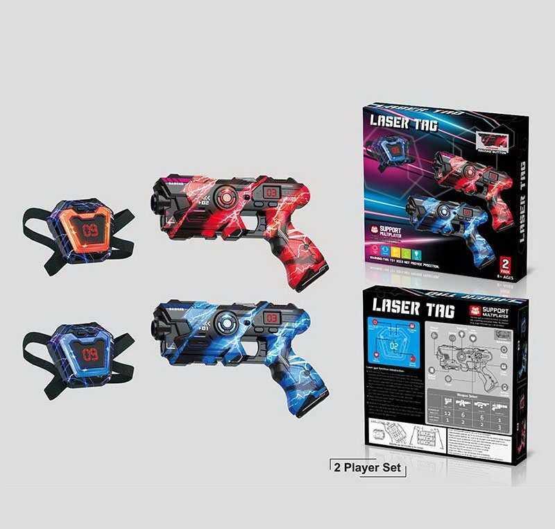 Захопливий набір лазерних пістолетів для двобою Пориньте у світ яскравих лазерних баталій з інтерактивним комплектом для двох гравців. У наборі представлені два пістолети з підсвічуванням, звуковими ефектами та чотирма режимами стрільби, а також дві мішені, які реагують на попадання світлом та вібрацією. Цей комплект ідеально підходить для активного відпочинку та розваг дітей і дорослих. Основні характеристики: - Комплект включає 2 пістолети та 2 мішені; - Розміри пістолета: 19х3х11 см; - Пістолети працюють від 3 батарейок типу AAA (не входять у комплект); - Підсвічування та звукові ефекти при стрільбі; - Кожен пістолет має 12 зарядів та 4 режими стрільби; - Розміри мішені: 10х3х10 см; - Мішені оснащені підсвічуванням, звуком і вібрацією; - Мішень має 12 «життів»; - Після попадання мішень видає відповідний аудіоефект і вібрує; - Пістолети оснащені ремінцями для зручного кріплення мішеней на гравцях; - В комплекті є інструкція та викрутка; - Футуристичний дизайн для захоплюючої гри.