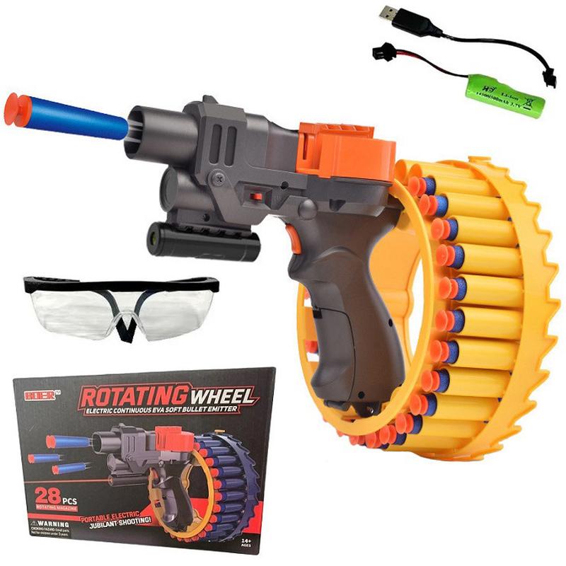 Скорострельный автоматический бластер на 28 зарядов, работает от аккумулятора