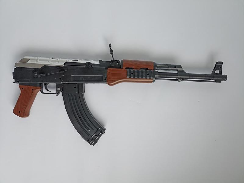 Дитячий автомат на кульках 799-1. Дитячий ігровий автомат на кульках розміром - це іграшка, яка імітує стрілянину з автомата і створює враження бойової ситуації, що створює. Він може бути цікавий дітям, які грають з наслідуванням бойових дій або пригод. Автомати працюють на кульках, що постачаються в комплекті. гравець повинен вставити кульки в магазин автомата, а потім натиснути на гачок, щоб запустити механізм стрільби. Кульки вилітають з автомата і досягають мети на відстані кількох метрів. Характеристики: Тип: автомат Тип боєприпасів: кульки Кульки в наборі: так Довжина автомата: 54 см Колір чорний Матеріал: пластмаса