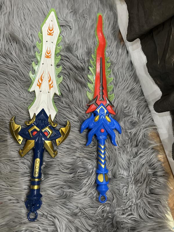Два мечі. Працюють на батарейках. Мають звукові та світлові ефекти. Ціна вказана за один