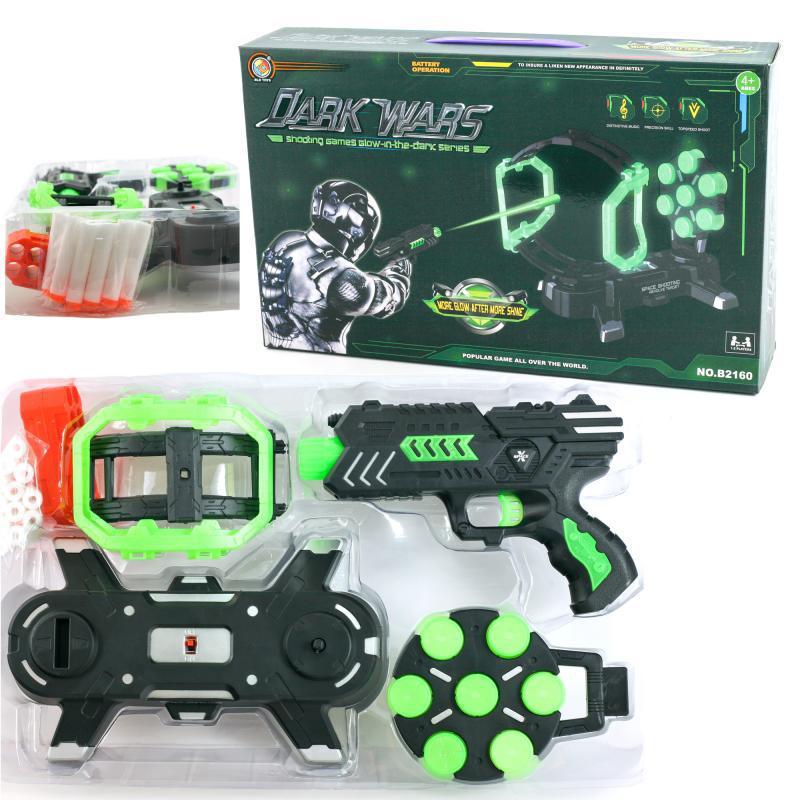 Набор с оружием пистолет 20см, мишень-музыкальная, светится в темноте, на батарейке, в коробке. Материал : пластик.