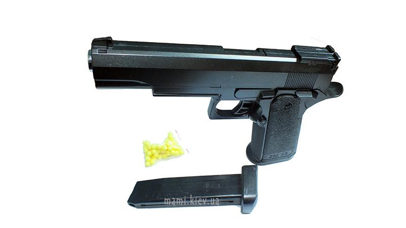 Пистолет ZM05 Пистолет ZM05 выполнен из качественного пластика с металлическими деталями. Дизайн пистолета очень реалистичный и ваш ребенок будет в восторге от почти реального боевого оружия. Команда интернет-магазина http://mami.******* настоятельно рекомендует использовать защитные очки при игре с данным видом оружия. Детский пистолет стреляет 6мм пульками, которые идут в комплекте в небольшом количестве. Рекомендуем докупить пульки. Уважаемые родители, пульки нельзя использовать повторно! Это может привести к поломке! Возраст: 3+ Размер коробки: 26х18x4,5см Размер пистолета 22х16см Вес: 480 гр Производитель: Китай