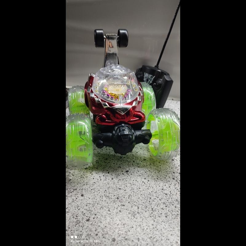 машина на пульте, светится, проигрывает музыка, колесо передние крутятся кругом