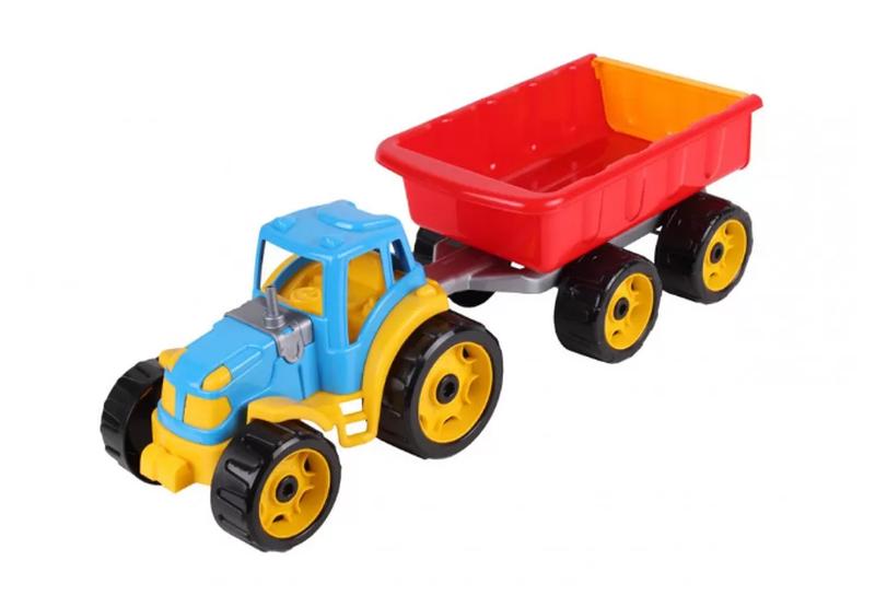 Трактор игрушечный с прицепом ТехноК 3442TXK Разноцветный топ Интересная детская игрушка трактор 3442TXK с прицепом, обладающая мощными, крупными колесами, с отлично проработанным, детализированный дизайном, подарит Вашему малышу море положительных эмоций. Подобные игрушки рекомендованы для сюжетно-ролевых игр, способствующих развитию коммуникативных навыков, воображения, самостоятельности и ответственности. Детская игрушечная машинка размером 54 х 17,5 х 16 см оснащена вместительным прицепом, в который ребенок сможет поместить мелкие предметы или кубики. Все детали игрушки абсолютно безопасные, не имеют острых выступов, поэтому во время забавы Ваш малыш не сможет себе причинить вреда. Легкая, компактная автомашинка-трактор с прицепом подойдет для игры и в помещении, и на открытом воздухе в песочнице. Износостойкие материалы и безупречное качество изготовления гарантируют долговечный срок службы, благодаря чему трактор с легкостью переживет многократные испытания ребенком на прочность.