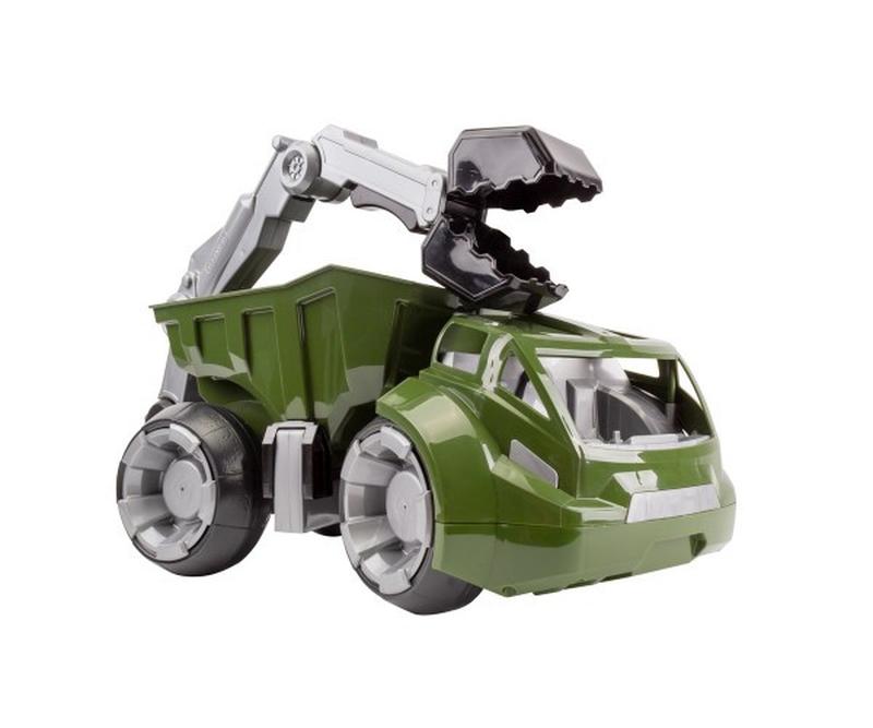 Новинка у серії Мілітарі від ТехноК!Самоскид з поворотною кабіною та великим маніпулятором-навантажувачем доповнить автопарк військової техніки для мужніх захисник Іграшковий "Самоскид ТехноК" універсальна потужна спецтехніка для роботи в кар'єрі та на будівництві. У автомобіля поворотна кабіна і великий відкидний в бік кузов, що робить самоскид надзвичайно мобільним та придатним до роботи в особливо складних умовах. Унікальною особливістю самоскида є потужний маніпулятор-навантажувач з двостулковим ковшем, що стане у пригоді при роботі з сипучими будматеріалами. Завдяки маніпулятору завантаження піском або гравієм відбувається без допомоги екскаваторів та інших тракторів. Саме про таку машину мріють багато наших будівельних фірм! Маніпулятор обертається навколо своєї осі та рухається вверх-вниз. Ківш відкривається за допомогою кнопки на корпусі. Завдяки пружині стулки ковша міцно стискаються та надійно утримують пісок. З маніпулятором ігри з самоскидом стануть особливо цікавими. Об'єм кузова становить 3.0 дм3 й у ньому зручно перевозити пісок та каміння. Бокове вивантаження дозволяє використовувати іграшку на обмежених площадках. Потужні колеса,виготовлені методом видуву забезпечують самоскиду тихий хід та високу прохідність. На кабіні розміщена зручна ручка для перенесення. Відкритий та ергономічний салон запрошує водія до роботи. Іграшка має цікавий футуристичний дизайн та захисні кольори хакі. Самоскид доповнить автопарк військової техніки для мужніх захисників.З таким самоскидом малюк буде із задоволенням гратись зі своїми друзями у пісочниці. Вони придумають різноманітні сюжетно-рольові ігри разом з іншими іграшками від ТехноК, особливо різноманітними тракторами та екскаваторами. Для дітей від 3-х років.Пакування - сітка. Велика картонна етикетка з патріотичним дизайном.