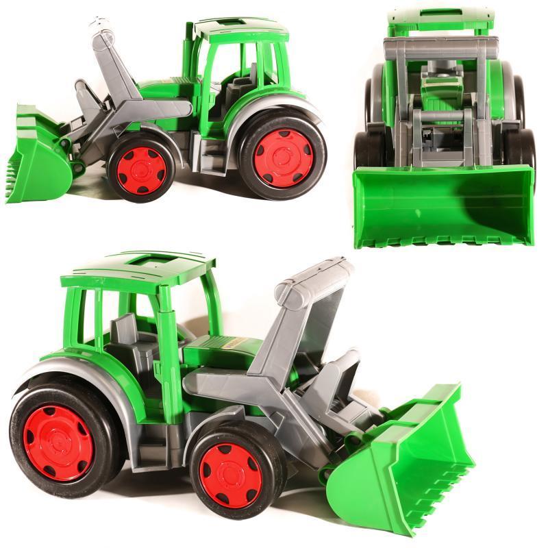 Большой игрушечный трактор Гигант с ковшом - яркая и функциональная машинка из серии Gigant Farmer от Wader, которая известна своей большой грузоподъемностью. Такие машинки можно не только возить, но и ездить на них. Это ребенок может делать самостоятельно, отталкиваясь ножками, или его может везти кто-то из родителей, предварительно привязав к машинке шнурок. Держась за удобную ручку, ребенок будет чувствовать себя в безопасности во время катания. Игрушечная машинка имеет современный, привлекательный и реалистичный дизайн, который доставит ребенку море удовольствия. Рухомий ківш трактора може підніматися і опускатися, а також повертатися в потрібне положення, завдяки чому грати ще більш пізнавально, цікаво і корисно. До трактора можна приєднувати причепи від інших машинок серії Wader Gigant Farmerс допомогою зручного кріплення. Великий іграшковий трактор Wader Gigant Farmer з ковшем має надійну конструкцію, яка робить його вдалою покупкою на багато років. Іграшкова машинка містить виключно міцні деталі і має закруглені краї. Грати з нею можна як вдома, так і в саду або пісочниці. Вантажопідйомність — до 100 кг.