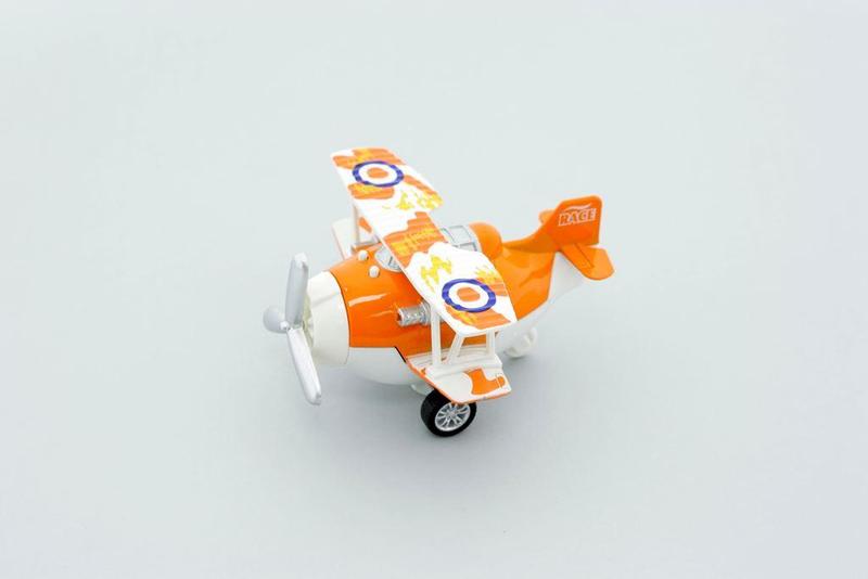 Металлический самолет игрушка инерционный со светом и звуком, same toy (оранжевый) 11 см