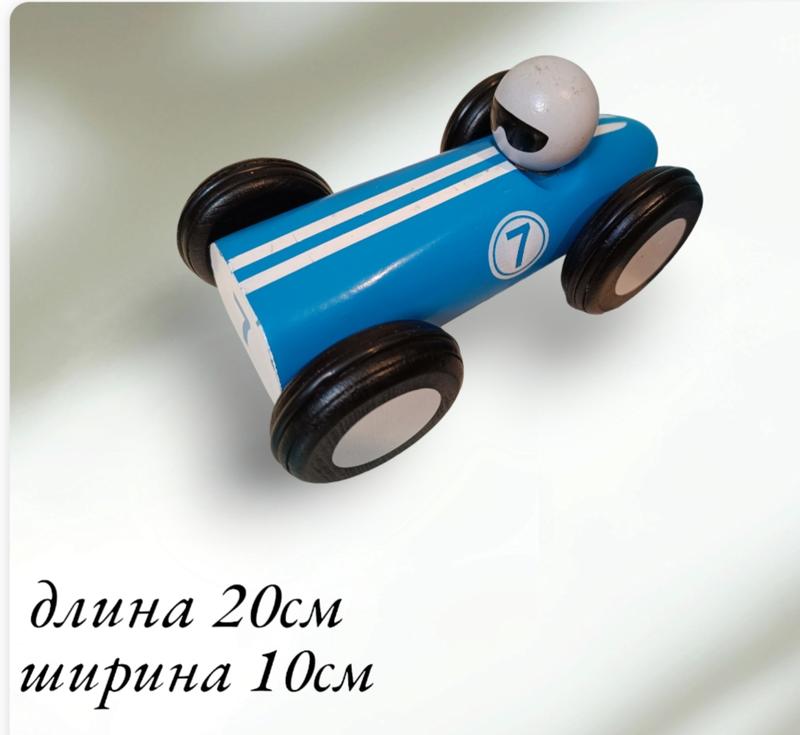 Гоночная машинка из дерева, колеса крутятся,механизм исправен, без сколов, в хорошем состоянии, фото дополнительно скину по требованию.