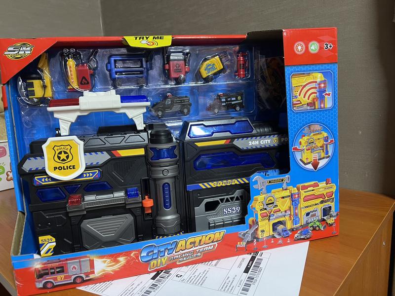 Паркинг гараж для машинок полиция трансформируется в чемодан, парковка для автомобиля, све...