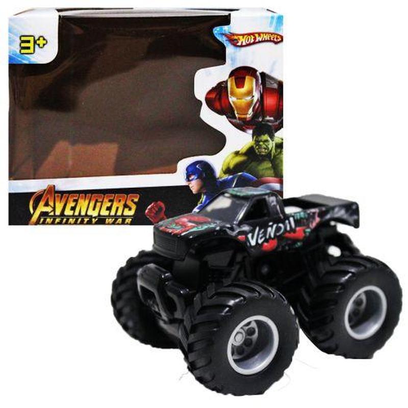 Джип бигфут Веном. Имеет резиновые большие колеса, изготовленные из пластика. Есть инерция на все колеса. Понравится фанатам Мстителей и не только. Прекрасно подойдет для веселых игр. Упакован в картонную коробку. Размеры: 8х7х10см._