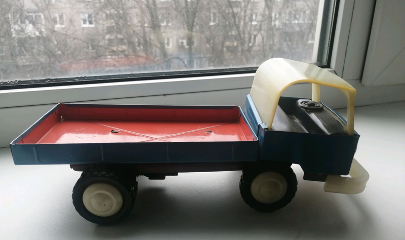 Торг Продам дитячу машинку СРСР у гарному стані. Кузов із жорстки, верх кабіни з пластику. Із заводним пристроєм, ключа немає. Довжина — 27 см, ширина 9,5 см, висота кабіни 10,5 см. Торг доречний!