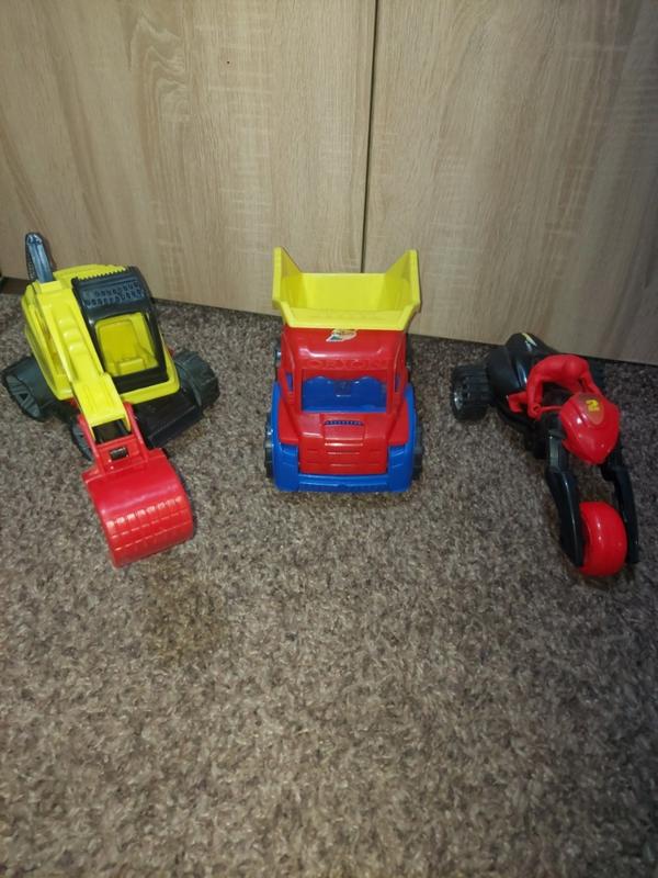 Екскаватор, Вантажівка і мотоцикл з мотоциклістом ( інерційний). Ціна за 1 100грн.