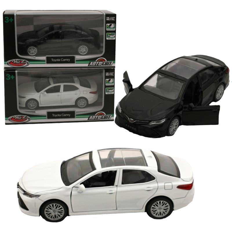 Іграшка "Toyota CAMRY", 11 см, 2 кольори. Масштаб - 1:43. Металева колекційна модель. Інерційний механізм. Гумові колеса, відкриваються двері. Упаковка - коробка. Розмір - 14,5х6,5х7 см.