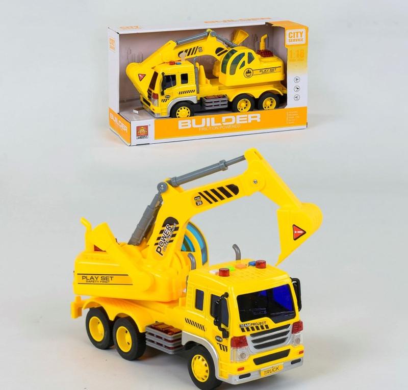 Будівельний екскаватор являє собою інерційну модель спецтехніки. Модель чудово деталізована в масштабі 1:16, тому стане чудовим подарунком для кожного малюка. Особливості моделі: - інерційний рух; - світяться проблискові маячки червоним і синім світлом; - докладна деталізація; - рухомі елементи кузова; - звукові ефекти (спецсисигнали). Тип живлення для звукових і світлових ефектів — 3 батарейки типу «AG13» (у комплекті). Розміри/габарити - довжина (см): 30 см - ширина (см): 9 см - висота (см): 14 см