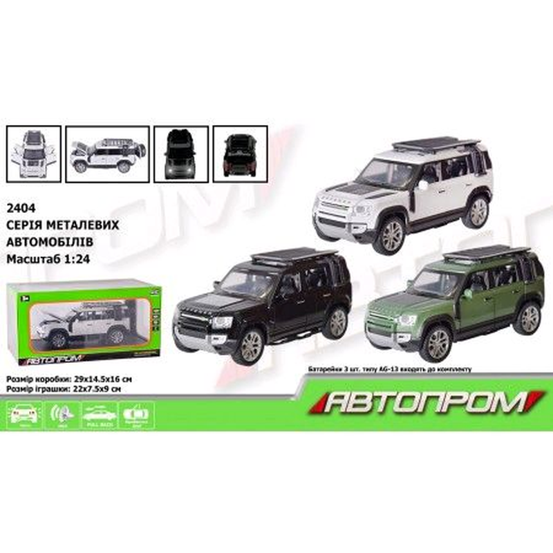 Виробник: Автопром Стать: Для хлопчиків Вік: 3 роки Тип іграшки: Позашляховики Матеріал: Металеві Кілька примірників у наявності Металева машинка позашляховик стане чудовим подарунком як для маленького автолюбителя, так і для дорослого шанувальника автомобілів. Машинка виготовлена в 3-х кольорах і дуже деталізована. Відкриваються передні та задні двері, капот та багажник. Висовується нижня підставка для ніг, при посадці в автомобіль. Бокова драбинка розкладається, а також відкривається спеціалізований кейс з лопатою. Машинка обладнана світловими та звуковими ефектами, а також інерційним механізмом. Масштаб 1:24 Функції: - інерційний механізм - звук - світло - відчиняються двері, капот, багажник, драбинка, кейс з лопатою - висовується підніжка Працюють від батарейок 3 шт типу AG13 входять у комплект. Розмір іграшки: 22*7,5*9 см Розмір коробки: 29*14,5*16 см