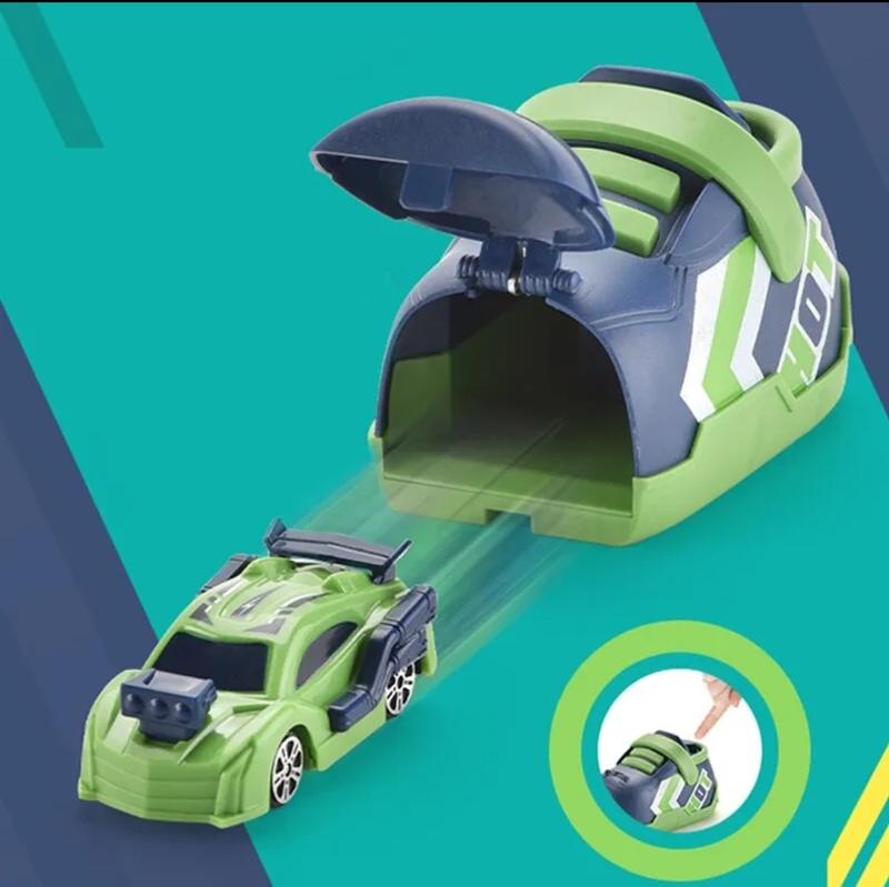 Машинка для детей с гаражом в виде ботинка,зелёная с синим,в пакете,машинка длиной 6см.