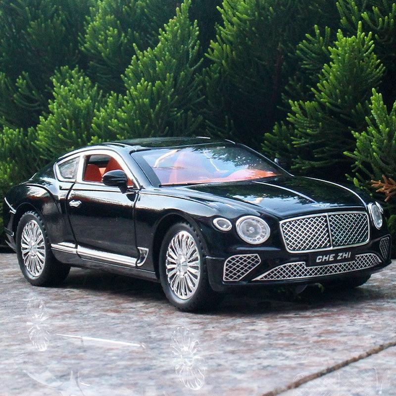 Машинка металлическая Bentley Continental GT от "Авто Эксперт" в масштабе 1:24. Модель имеет металлический корпус, колеса с резиновыми покрышками. При нажатии на переднюю пару колес модель издает звуки зажигания двигателя, стремительного разгона и торможения, светятся фары и стопы. Открываются двери, капот и багажник. Модель оснащена инерционным механизмом. Масштаб модели 1:24. Размер машинки 20.5 * 9 * 5.5 см. Размер коробки 29 * 16 * 12 см.