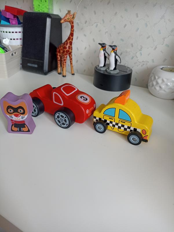 деревянные машинки таксі 60 красная с котиком 85
